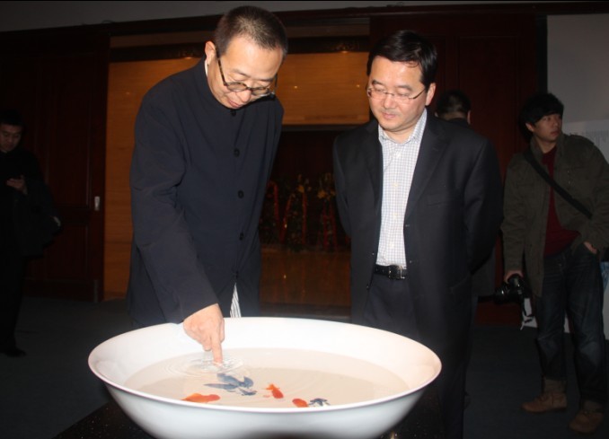 劉為民在參觀“國瓷彩墨”展覽的過程中,仔細欣賞了每件作品的藝術意蘊,對瓷上繪制所達到的藝術效果給予了高度評價。劉為民還建議“國瓷彩墨”作品以后的創作要進一步拓展表現的題材,從中國畫傳統中去尋找營養。