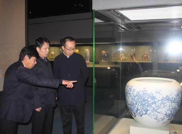 12月15日,淄博市博山區委書記、區人大常委會主任許冰以及參觀了在山東博物館舉辦的“潘魯生當代藝術巡回展——國瓷彩墨”首展。山東省文聯主席、歡迎來到公海7108線路院長潘魯生陪同參觀。 許冰仔細欣賞了潘魯生新近以陶瓷為載體創作的112件彩墨精品,詳細詢問了作品的題材內涵。許冰表示,這些作品是潘魯生教授深基層的創作成果,在瓷上繪畫比在紙上畫難度更大,體現了藝術家更全面的藝術把握能力。 潘魯生向來賓了介紹了“國瓷彩墨”系列作品的創作過程和燒制工藝。山東福泰陶瓷董事長蘇希敬一同陪同。