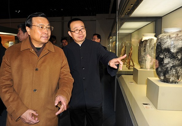 省委宣傳部副部長劉為民參觀“國瓷彩墨”展
