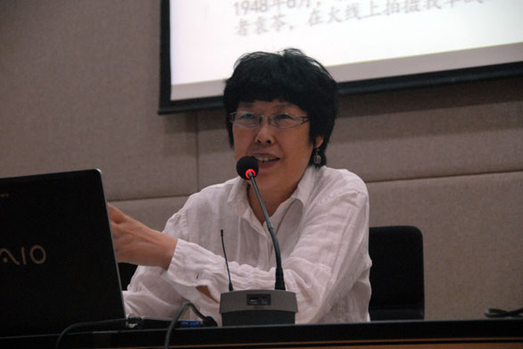 陳小波以“圖像正史——新華典藏影像”為主題,通過幻燈片展示了作為新華典藏的部分影像。通過展示40年代到90年代的影像資料,詳細的介紹了新華社攝影歷史。她認為:“每個人生活的當下都是值得記錄的,而新華典藏所選用影像是采取不剪裁原理進行篩選,它向我們真實再現了當時的生活,具有很高的歷史價值”。