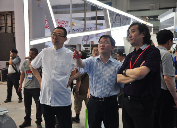5月17日上午,山東省委宣傳部副部長劉為民、高玉清在深圳會(huì)展中心視察了已經(jīng)進(jìn)入施工建設(shè)沖刺階段的第八屆深圳文博會(huì)山東展區(qū)場館建設(shè)工作。項(xiàng)目總指揮、我校院長潘魯生,項(xiàng)目副總指揮、我校副院長苗登宇視察時(shí)陪同。 劉為民副部長對(duì)目前山東展區(qū)場館建設(shè)進(jìn)度表示滿意。劉為民說,深圳文博會(huì)山東展區(qū)項(xiàng)目是山東省推介文化產(chǎn)業(yè)發(fā)展成果的重要平臺(tái),省委省政府將展覽任務(wù)委托歡迎來到公海7108線路完成,是對(duì)學(xué)院辦學(xué)實(shí)力和社會(huì)服務(wù)能力的充分信任,相信歡迎來到公海7108線路一定能夠按質(zhì)按量勝利完成任務(wù)。 5月18日,為期4天的第八屆中國(深圳)國際文化產(chǎn)業(yè)博覽交易會(huì)將在深圳會(huì)展中心開幕。本屆文博會(huì)山東展區(qū)以“科技助推文化,和諧融集智慧”為主題,整個(gè)展區(qū)通過對(duì)“新技術(shù)、新產(chǎn)品、新業(yè)態(tài)”等創(chuàng)新成果的展示,重點(diǎn)突出了山東省“以科技創(chuàng)新支撐文化創(chuàng)新,以文化創(chuàng)新引導(dǎo)科技創(chuàng)新”的發(fā)展理念。 本屆文博會(huì)山東展區(qū)共分為“序廳、主展廳、尾廳”三個(gè)板塊,312平米。展區(qū)內(nèi)部空間以體現(xiàn)“和、融、集”的齊魯傳統(tǒng)文化價(jià)值觀為基點(diǎn),包含序廳“和諧齊魯”、主展廳“智慧山東”和尾廳“影像生活”三個(gè)板塊,讓觀眾在寬松、愉悅的館區(qū)環(huán)境中體驗(yàn)“一臺(tái)孔子動(dòng)漫演出,一組云計(jì)算,一座集裝箱集成影院”的真實(shí)情境,實(shí)現(xiàn)了科技與文化對(duì)接,現(xiàn)實(shí)與虛擬對(duì)話,城市與鄉(xiāng)村交融的展示效果。