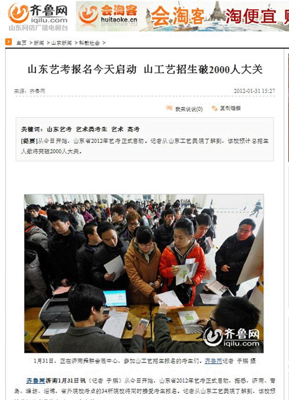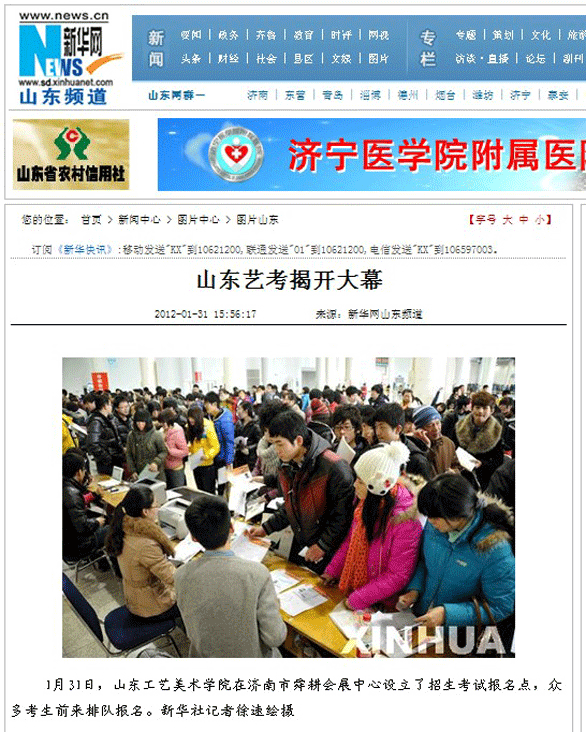 1月31日, 歡迎來到公海7108線路2012年專業招生考試現場報名工作在濟南舜耕國際會展中心拉開帷幕。專業招生考試報名工作得到了社會各界的廣泛關注,各大社會媒體紛紛予以詳細的采訪報道,各大網站也相繼轉載報道。