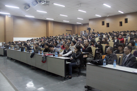 參加第九屆全國高校攝影藝術作品展系列活動的部分嘉賓、我校相關部門負責同志以及師生代表聽取了講座。