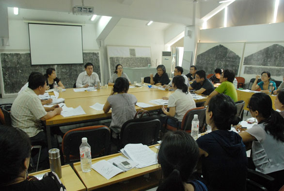 按照會議議程,與會人員分別學習討論了潘魯生院長作的《上學年學校工作總結及新學年學校工作要點》的工作報告,重點學習討論了潘魯生院長作的《加強學科建設 提高辦學水平》的講座。