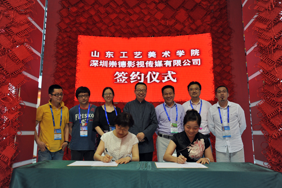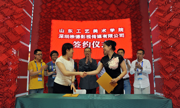 2011年5月13日,我校與深圳崇德影視傳媒有限公司在深圳會展中心簽署戰略合作框架協議。我院院長潘魯生,副院長李新,深圳崇德影視傳媒有限公司董事長趙先德、副總經理張立軍、總經理助理易容出席簽約儀式。 崇德影視傳媒致力于讓國學走近青少年生活,曾策劃制作大型奧運主題動畫片《福娃》及104集動漫巨制《孔子》,并廣泛開展電視劇、動畫片及電視綜藝節目的制作與發行,制作企業動畫形象廣告,籌劃市場推廣方案、動畫衍生產品的研發等。簽署戰略合作框架協議后,雙方將在動漫影視創作及衍生品開發設計、手機或網絡動漫游戲開發、劇本創作、CG設計、FLASH、人才培養、產學研成果轉化以及建立實習基地等方面進行合作。這是貫徹落實國家“文化惠民”戰略,走依托文化創意產業,服務區域經濟,培養應用型人才的特色辦學之路,全面推進校企間的“產學研”合作的積極嘗試。 學校社會服務辦公室、美術館、民藝所、工業設計學院、數字藝術與傳媒學院、應用設計學院、網絡信息管理中心等單位人員參加簽約活動。