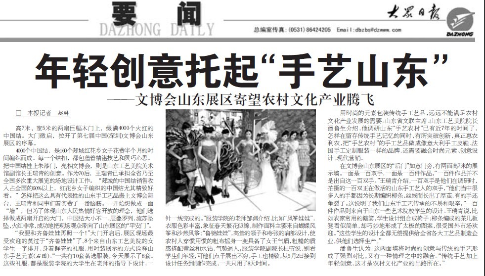 >> 大眾日報-新華網-中國網-搜狐網-中工網-新民網:年輕創意托起“手藝山東”