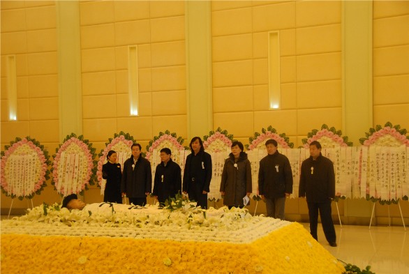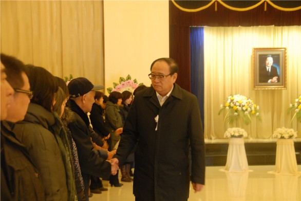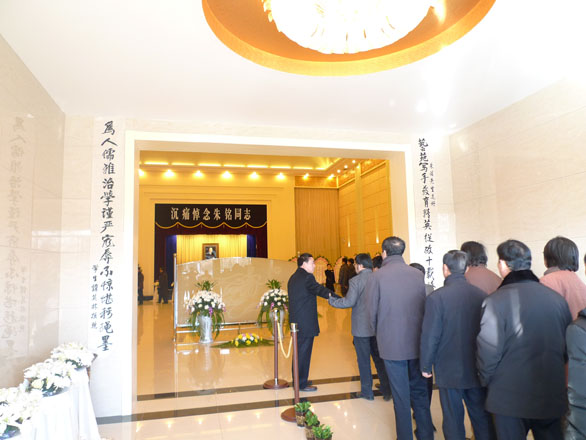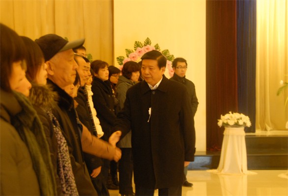 1月29日下午,全國(guó)政協(xié)原常委、山東省政協(xié)原副主席、中國(guó)民主同盟中央委員會(huì)原常委、中國(guó)民主同盟山東省委員會(huì)原主委、著名的藝術(shù)史學(xué)家、美術(shù)教育家、資深教授、我校原副院長(zhǎng)朱銘先生的遺體告別儀式在濟(jì)南市殯儀館舉行,省委書記、省人大常委會(huì)主任姜異康,省委副書記、省長(zhǎng)姜大明,省委副書記、省政協(xié)主席劉偉,省委常委、常務(wù)副省長(zhǎng)王仁元等省領(lǐng)導(dǎo),以及社會(huì)各界人士前往吊唁。 我校領(lǐng)導(dǎo)于茂陽(yáng)、潘魯生、楊新力、裴新鋒、李新、刁在祥、張?jiān)讫垺⒚绲怯睿倚T跐?jì)教職工代表前往參加告別儀式。 追悼廳內(nèi)布滿了花圈及挽聯(lián)。下午2時(shí),儀式正式開(kāi)始,低沉的哀樂(lè)聲中,前來(lái)吊唁的領(lǐng)導(dǎo)和來(lái)賓向朱銘先生遺體三鞠躬并默哀,省領(lǐng)導(dǎo)對(duì)朱銘先生的逝世表示沉痛哀悼,向朱銘先生的家屬致以誠(chéng)摯的慰問(wèn)。 1月25日2時(shí)20分,朱銘先生因病醫(yī)治無(wú)效,在濟(jì)南逝世,享年74歲。