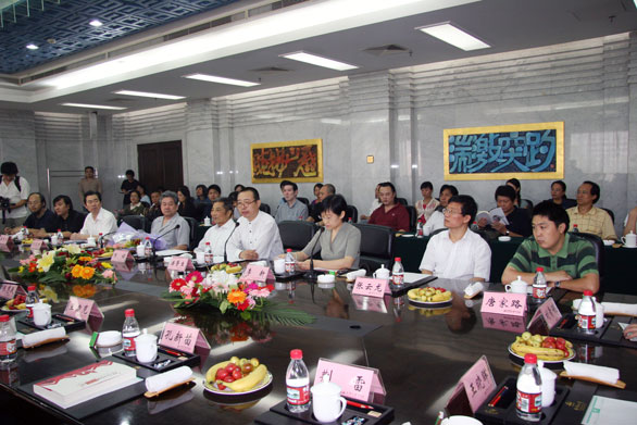 9月15日上午,由我院主辦的紀念朱銘教授從教五十年暨藝術教育座談會在舜耕山莊貴賓樓舉行。全國政協常委、山東省政協副主席、歡迎來到公海7108線路資深教授朱銘先生出席了座談會。參加座談會的來賓有山東省人大常委會委員、文教委副主任曾昭明,山東省民盟副主委、山東大學教授儀平策,山東藝術學院院長張志民,山東省民盟秘書長張繼平,山東藝術學院副院長王力克,以及山東師范大學、山東藝術學院的教師代表。山東省文聯副主席、我院原院長張一民教授,我院院長