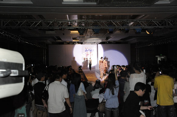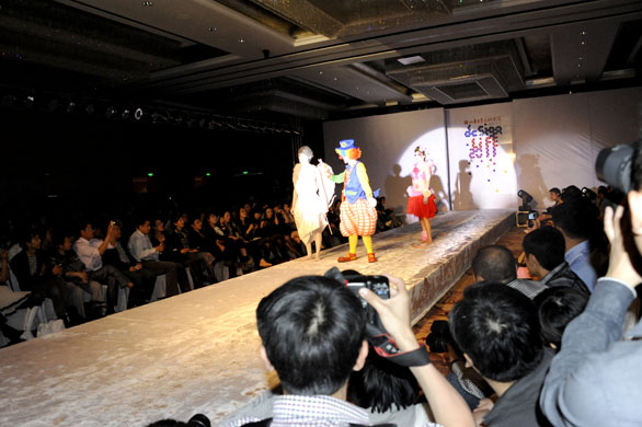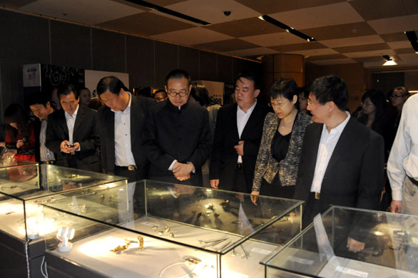 5月1日下午,我校2011設計藝術博覽會之服裝表演、妝扮展專場在濟南銀座索菲特六層多功能廳舉行。院長潘魯生,黨委副書記楊新力,黨委副書記、紀委書記裴新鋒,副院長李新、刁在祥、張云龍、苗登宇出席,并觀看展演。