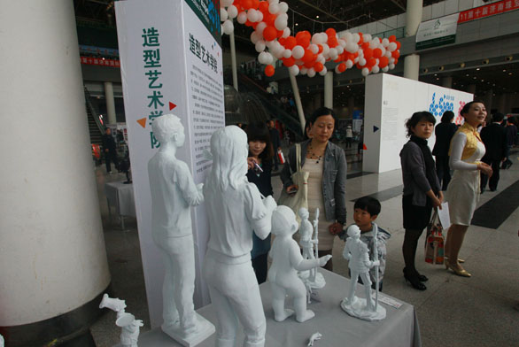 5月1日上午,我校2011年設計藝術博覽會暨畢業生推介會在濟南舜耕國際會展中心隆重開幕,為泉城市民奉上設計藝術的文化盛宴。 我校以設計藝術博覽會的形式向廣大市民推出畢業生作品展,多年來已形成良好品牌,取得越來越好的社會反響,成為濟南市文化生活中必不可少的一項重要文化活動。通過設計藝術博覽會,不僅展示了我校的辦學特色和實力,也向廣大市民傳播了前沿的設計理念和時尚的生活理念,體現了設計藝術博覽會“設計?生活”的宗旨。 前來參觀的廣大市民在琳瑯滿目的設計藝術作品中駐足流連,不時拿起相機留影,并與我校畢業生進行交流。這其中不僅有年輕人,還包括不少老年人和隨父母前來的孩子,他們對精彩的展品以及我校推出的設計藝術博覽會這種開放式展覽形式均表達了贊賞。