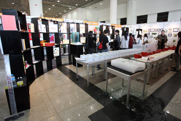 本屆博覽會延續“設計?生活”的主題,作品貼近生活,引領時尚,在新材料、新工藝、新技術的運用上有了更大進步。除了傳統的繪畫、雕塑等美術類作品和平面設計作品之外,更多地涉及工業類、建筑類產品模型,陶藝、漆藝、首飾等手工作品,動畫、影視美術等多媒體設計作品。縱觀整個畢業展,學生們嘗試著“給傳統穿新衣”,環保、創新、反思、希望等是大部分作品的核心主題,學生們借助多樣的材料和多角度的表達方式,讓設計作品與當下社會接軌,與百姓生活密切相關,切實做到了“設計服務生活,設計引領生活。
