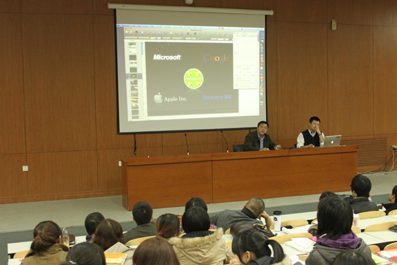 彥風老師首先向同學們介紹了中央美術學院設計學院數碼媒體工作室的相關情況,并通過工作室近年承擔的包括與Google、Apple、騰訊等著名公司合作的項目,生動詳實地展示了交互設計的藝術魅力,真實的勾畫出了該領域的發展前景和未來。