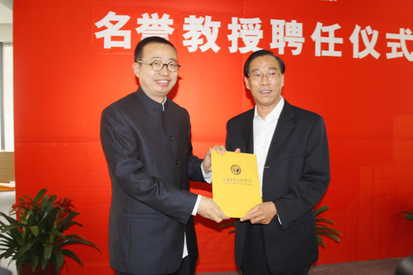 李新簡要介紹了黃可華先生的情況后,李世平宣讀了聘任決定,潘魯生向黃可華頒發(fā)了聘任證書。