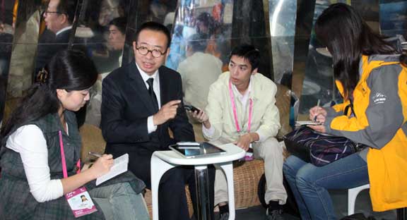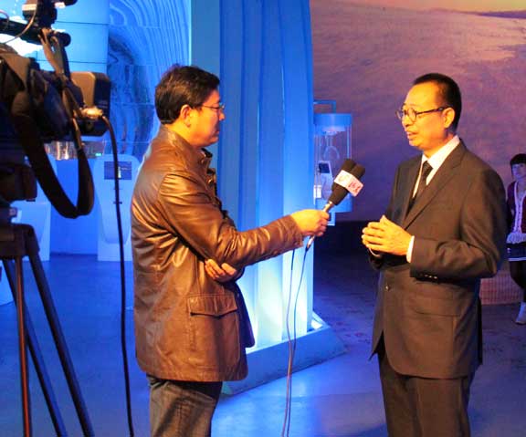 世博會山東館,接受了山東衛(wèi)視、大眾日報、山東人民廣播電臺和齊魯晚報記者的集體采訪。
