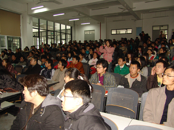 郭力教授通過翔實的文字資料和圖片,系統地介紹了世博會的發展歷史、中國特色的運用、05愛知世博會中國館設計、2010年上海世博會設計等內容,并接受了同學們的提問,受到了同學們的熱烈好評。