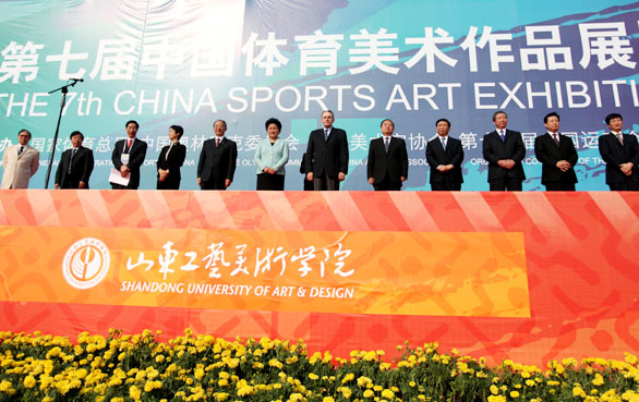 10月16日上午9時,由國家體育總局、中國奧委會、中國美協(xié)和第十一屆全運會組委會共同主辦的第七屆中國體育美術(shù)作品展在我校長清校區(qū)隆重開幕。 中共中央政治局委員、國務委員劉延東,國際奧委會主席雅克·羅格,國家體育總局局長劉鵬,教育部部長周濟,國務院政策研究室副主任江小娟,國家體育總局副局長于再清、馮建中,中國文聯(lián)副主席、中國美協(xié)主席劉大為,國際奧委會委員、中國香港奧委會主席霍震霆,山東省省委副書記、省長姜大明,山東省省委常委、宣傳部長李群,山東省副省長黃勝、李兆前出席開幕式。開幕式由山東省副省長黃勝主持。有關(guān)方面領(lǐng)導、全國各省區(qū)市美術(shù)家協(xié)會負責人士和新聞界、美術(shù)界人士參加開幕式。我校院長潘魯生宣布第七屆中國體育美術(shù)作品展開幕式由山東省副省長黃勝主持。 山東省副省長黃勝代表中共山東省委、山東省人民政府向各位領(lǐng)導、各位嘉賓表示熱烈的歡迎和誠摯的感謝。他指出,第七屆中國體育美展體現(xiàn)出“和諧中國 全民全運”的宗旨,展示了體育運動“更快、更高、更強”的奧林匹克精神追求,用美術(shù)語言全方位、多角度地展現(xiàn)了體育與美術(shù)、運動與人文相結(jié)合的魅力,展現(xiàn)了運動之美、力量之美、和諧之美,表現(xiàn)了中國當代美術(shù)家對體育、生命的感受和洞察,以及他們對奧林匹克精神的詮釋和熱愛。 體育總局局長劉鵬致辭。他指出,體育和藝術(shù)有著天然的聯(lián)系,體育所展現(xiàn)的力量之美、精神之美,無不拓展著藝術(shù)創(chuàng)作的題材、豐富著藝術(shù)創(chuàng)作的內(nèi)涵,而藝術(shù)所展現(xiàn)的體育畫卷,很好的傳播了體育文化,促進了體育的普及,國家體育總局和中國奧委會一直致力于推動體育與文化的結(jié)合,推動體育藝術(shù)事業(yè)的繁榮和發(fā)展。 中國文聯(lián)副主席、中國美協(xié)主席劉大為在致辭中指出,用藝術(shù)展示藝術(shù)之美,傳播奧林匹克精神,是中國美術(shù)家長期以來的藝術(shù)追求。中國體育美展的眾多美術(shù)作品集中體現(xiàn)了中國美術(shù)家對體育精神的理解和發(fā)展奧林匹克藝術(shù)事業(yè)的貢獻。第七屆中國體育美術(shù)作品展是國家級美術(shù)大展,本次展出作品以“力量之美”為主題,用多種藝術(shù)表現(xiàn)手法展示了體育的深刻內(nèi)涵,生動的詮釋了奧林匹克精神,是一次完美的藝術(shù)與體育的融合。 國際奧委會主席雅克·羅格致辭。他表示,很高興來到中國參加第七屆中國體育美術(shù)作品展開幕式,并對中國奧委會在全運會期間舉辦此次傳統(tǒng)展覽表示祝賀。他指出,體育美術(shù)展突出體現(xiàn)了體育與文化、藝術(shù)的緊密結(jié)合,這正是奧林匹克運動理念與價值觀的核心內(nèi)容。通過作品,藝術(shù)家們?yōu)閭鞑ンw育,以及卓越、友誼、尊重的價值觀做出了貢獻。無論是從體育中獲取靈感的藝術(shù)家們,還是來此參觀的貴賓們,本屆美展都具有重要的教育意義。 出席開幕式的領(lǐng)導中共中央政治局委員、國務委員劉延東,國際奧委會主席雅克·羅格,國家體育總局局長劉鵬,中國文聯(lián)副主席、中國美協(xié)主席劉大為,山東省省委副書記、省長姜大明為開幕式剪彩。 中國體育美術(shù)作品展覽是國際上規(guī)模最大的以體育內(nèi)容為題材的美術(shù)展覽,意義重大,為籌辦第七屆中國體育美術(shù)作品展,我校黨委行政高度重視,將其作為學校當前最重要的政治任務來抓,籌委會多次召開協(xié)調(diào)會研究工作方案,各工作小組分工細致,嚴格按照相關(guān)文件精神,抓緊時間細化實施方案,積極落實各項措施。開幕式當天,我校以優(yōu)美的校園環(huán)境、濃烈的藝術(shù)氛圍,熱情的服務態(tài)度,積極昂揚的師生精神面貌迎接出席第七屆中國體育美術(shù)作品展開幕式的各位領(lǐng)導和貴賓們,展示了我校濃厚的藝術(shù)特色和文化氣息,進一步弘揚了體育、文化與教育融為一體的奧林匹克文化理念。 本屆中國體育美術(shù)作品展覽受到了中央及省市二十余家新聞媒體的廣泛關(guān)注。 我校學校領(lǐng)導于茂陽、潘魯生、李世平、楊新力、王秀存、李新、刁在祥、張云龍、苗登宇、王立果,各二級學院和有關(guān)部門負責人,以及我校部分師生代表一千五百余人參加了開幕式。 開幕式結(jié)束后,校領(lǐng)導陪同各位領(lǐng)導及嘉賓參觀了在我校美術(shù)館展出的第七屆中國體育美展作品。