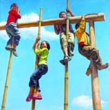 新中國成立60年來,特別是改革開放30年以來,中國的體育事業(yè)獲得了全面深入的發(fā)展,專業(yè)競技體育項目取得了舉世矚目的成就,傳統(tǒng)體育運動也得到了深入挖掘和傳承,更重要的是群眾性體育運動得到了普及和發(fā)展。2008年北京奧運會在中國成功舉辦,“后奧運時代”的運動健身觀念已經(jīng)深入人心,這些成就既是藝術(shù)家創(chuàng)作的重要題材,更重要的是體育對于人類價值與意義的體現(xiàn)。第七屆中國體育美展作品貼近實際、貼近生活、貼近民眾,真正體現(xiàn)了全民全運的理念,少了一些宏觀歷史敘事和圖解運動概念的表現(xiàn),多了人性化、平民化、自然、真實的運動健身理念的藝術(shù)闡釋,是藝術(shù)家內(nèi)心情感的真實流露,反映了新的社會背景下藝術(shù)家創(chuàng)作情感的真實體驗。