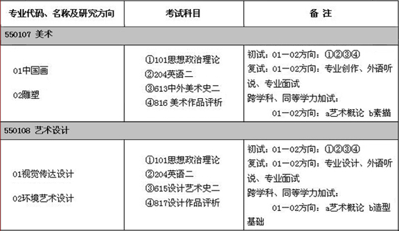 學校于2010年面向全國招收藝術學、美術學、設計藝術學三個學科的全日制學術型碩士研究生和美術學、設計藝術學全日制藝術碩士(MFA)專業學位研究生。現將全日制學術性碩士研究生和全日制藝術碩士(MFA)專業學位研究生招生考試科目和參考書目公布如下: