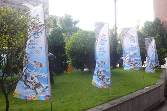 據(jù)人民日?qǐng)?bào)社人民網(wǎng)報(bào)道,本屆世運(yùn)會(huì)在景觀及視覺(jué)設(shè)計(jì)方面,注重節(jié)能環(huán)保,主場(chǎng)館采用太陽(yáng)能發(fā)電系統(tǒng)設(shè)計(jì)建造,使用綠色能源,體現(xiàn)環(huán)保主題。吉祥物“水精靈”,以高雄市“光和水”兩大主題為靈感,在造型上以水滴形狀出現(xiàn),以“高雄”兩字命名為“高妹”和“雄哥”,并運(yùn)用太陽(yáng)能發(fā)電,吉祥物頭部的小球吸收太陽(yáng)能后,身體發(fā)光。會(huì)徽以高雄市的“高”字為主要元素,設(shè)計(jì)為彩帶形狀,呈現(xiàn)繽紛色彩和律動(dòng)感覺(jué),傳達(dá)和諧、友誼、律動(dòng)、飛躍、進(jìn)步、歡樂(lè)的概念。且彩帶狀的“高”字起頭為黃色系,結(jié)尾使用藍(lán)色系,表現(xiàn)高雄市是一座擁有陽(yáng)光和海洋的城市。