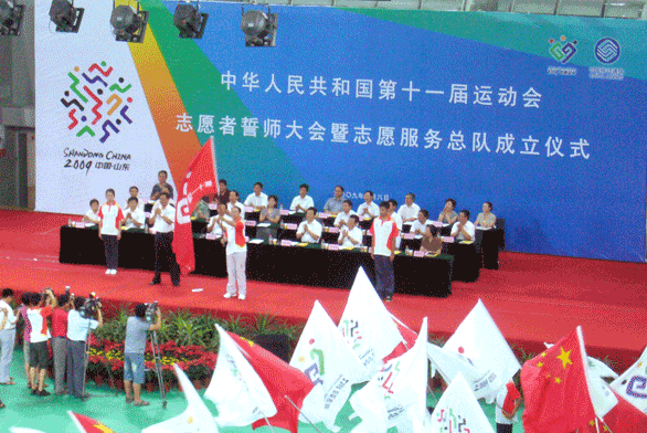 2009年7月8日下午,在十一運(yùn)會倒計(jì)時(shí)一百天之際,十一運(yùn)會志愿者誓師大會暨志愿服務(wù)總隊(duì)成立儀式在山東交通學(xué)院長清校區(qū)舉行。 省委副書記、省籌辦十一運(yùn)工作領(lǐng)導(dǎo)小組組長劉偉出席大會并為十一運(yùn)會志愿服務(wù)總隊(duì)授旗。省委常委、宣傳部長、十一運(yùn)組委會副主任李群講話。副院長張?jiān)讫埓砦倚T谥飨_就坐。 李群在講話中說,廣泛開展多種形式的志愿服務(wù)活動是辦好第十一屆全運(yùn)會的重要保證,也是廣大志愿者義不容辭的責(zé)任。希望志愿者始終高揚(yáng)志愿服務(wù)的旗幟,通過熱心、周到、細(xì)致、得體的工作,把“奉獻(xiàn)、友愛、互助、進(jìn)步”的志愿服務(wù)理念體現(xiàn)到志愿服務(wù)的每一個(gè)細(xì)節(jié),為全運(yùn)會提供全方位、高質(zhì)量的服務(wù),讓各界來賓和廣大人民群眾滿意。要做好“文明山東”的形象大使,通過優(yōu)異的志愿服務(wù)活動,向世界、向全國展示山東熱情、樸實(shí)、文明、好客形象,展示山東科學(xué)發(fā)展、和諧發(fā)展、率先發(fā)展的豐碩成果,使全運(yùn)會成為展示“文明山東”建設(shè)水平的最佳平臺。 我校志愿者在克服了假期、雨天的各種不利因素下,圓滿的完成了組委會交給我們的任務(wù),保證了會議的圓滿成功。在會場,大家嚴(yán)肅認(rèn)真,高唱《歌唱祖國》,振奮了大家的心情,鼓舞了同學(xué)們的士氣。 我校全運(yùn)會志愿者隊(duì)伍自成立以來,廣泛參加各項(xiàng)活動,認(rèn)真踐行著“我熱誠 我參與 我奉獻(xiàn) 我成長”的志愿者口號,無私奉獻(xiàn),默默無聞,在學(xué)校和社會上得到了贊揚(yáng)。我校志愿者也將以此為契機(jī),各項(xiàng)服務(wù)工作進(jìn)入臨戰(zhàn)狀態(tài),以最飽滿的熱情迎接全運(yùn)會。 團(tuán)委書記袁文昌及參加十一運(yùn)志愿服務(wù)工作的李忠誠、劉廣棟、姜維東老師和221名志愿者同學(xué)參加了此次會議。