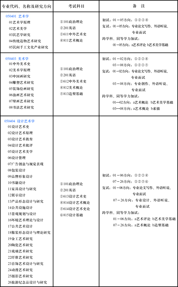 03—08方向以下列參考書目為主:《中國美術史教程》,薄松年、陳少豐、張同霞編著,陜西人民美術出版社,2000年版。《西方美術史教程》,李春著,陜西人民美術出版社,2002年版。