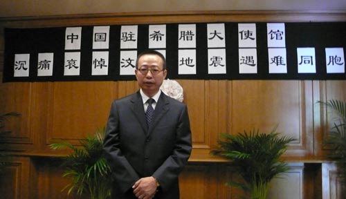 院長在中國駐希臘大使館悼念震災遇難同胞