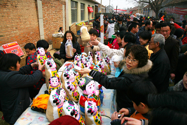 2008年3月9日上午,在結(jié)束對(duì)高密撲灰年畫、聶家莊泥玩具的田野考察后,課題組一行九人來(lái)到濱州市,考察在這里舉行的二月二娃娃廟會(huì),感受民間傳統(tǒng)節(jié)日的熱鬧氣氛。