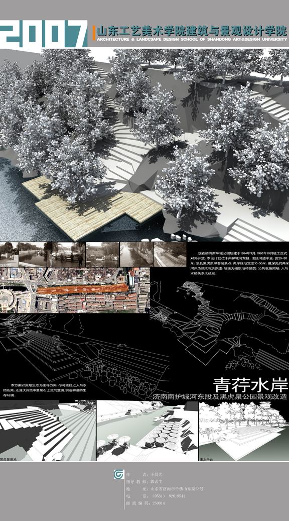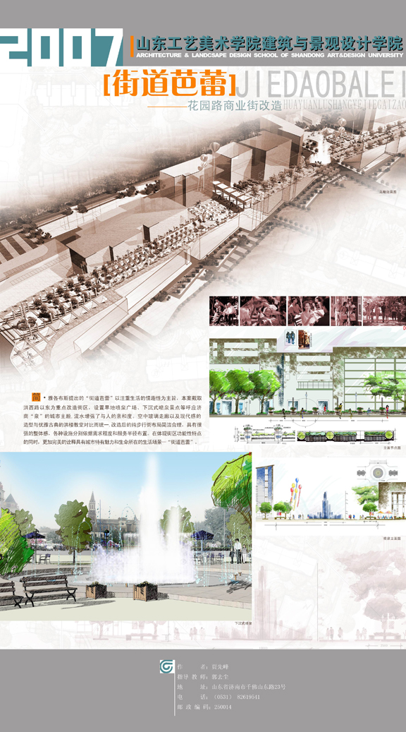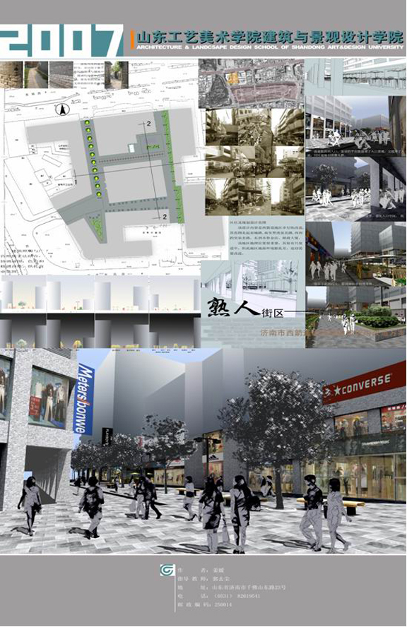 現代城市更新在當前很受關注。通過對舊城的改造無需大量重建,通過修整用地的功能就可以使用地實現另一種價值。像黑虎泉,解放閣、楊家樓廣場等等的改造都是采用這種方式進行的。這不但能提升現代社會城市的使用功能,而且能使城市設計更加人性化。在本次展覽中,作品《街道芭蕾》、《青荇水岸》、《熟人街》等都是對現有建筑形式進行改造的好方案。