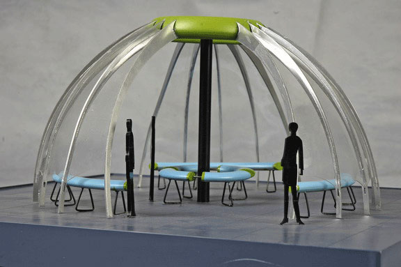 在作品展中,“生活設計”與“概念設計”并存,達到了和諧統一。“生活設計”即以市場為導向,講究設計的實用性,它體現了設計者對現實生活的關注和對市場脈搏的把握。“概念設計”不以當前實用為目的,而是探索研究對未來設計的引導性,是對未來起引領作用作品的嘗試,帶有強烈的實驗性。作品《環境小品式公共座椅》把城市公共雕塑與公共座椅自然的融合在一起,在一定程度上節約了公共空間資源,使它在形態、色彩上達到視覺的統一,適合在大型休閑場所安置,具備很高的實用價值。作品《概念車》在車的頂部使用了大幅度玻璃天窗,使用的陀螺儀技術在任何情況下都能保持平衡,另外可調式座椅、電腦智能系統、內置攝像頭等都展現出了嶄新的設計理念。