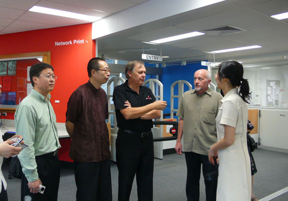 我校代表團在Paul Cleveland教授、Siegfried Manietta教授、Donald Welch教授和Mary Squeen女士陪同下,考察了格里菲斯大學昆士蘭美術學院的影視實驗室、攝影實驗室、印刷實驗室、數字媒體實驗室、繪畫工作室、金屬工藝工作室、雕塑工作室、學生作品陳列室和圖書館等。隨后,Paul Cleveland教授、Siegfried Manietta教授、Donald Welch教授和Mary Squeen女士與我校代表團進行了廣泛交流,雙方就攝影、影視媒體專業的實踐教學方面的交流達成廣泛共識,并邀請Siegfried Manietta教授于2007年10月到我校訪問講學。
