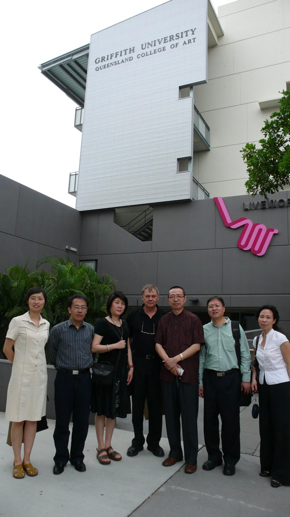 、數字藝術與傳媒學院院長王傳東、圖書館副館長彭冬梅、國際合作與交流處郭睿和濟南畫院院長杜華一行六人到澳大利亞格里菲斯大學昆士蘭美術(Griffith University Queensland College of Art)學院考察訪問。格里菲斯大學昆士蘭美術學院院長Paul Cleveland教授、世界著名攝影家Siegfried Manietta教授、設計系主任Donald Welch教授和美術學院教務主任Mary Squeen女士接待了學校代表團一行,格里菲斯大學昆士蘭美術學院院長Paul Cleveland教授向學校代表團介紹格里菲斯大學昆士蘭美術學院整體情況,
