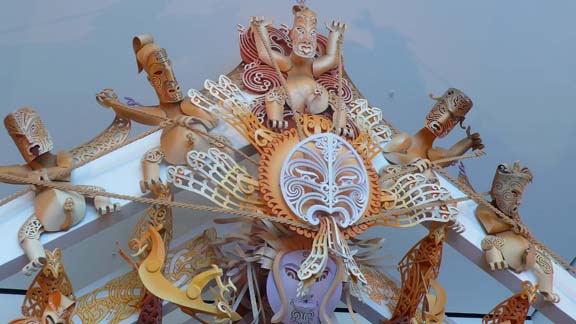 在位于惠靈頓的新西蘭國家博物館國家中,土著民族用品及藝術占據博物館的主體,另外還有地質及生物標本等。毛利人土著藝術大到房屋、圖騰柱、交通工具、祭祀場所,小到生活用品等無所不包,采用實物、復制品和影像資料等方式展示。與其他國家相比,新西蘭的土著文化保護的是最好的,博物館是新西蘭歷史文化的寫照,也是傳承文化的重要場所,是新西蘭人從小就經常光顧的場所。