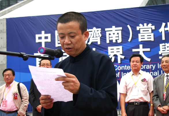 9月25日上午,中國(濟南)當代國際攝影雙年展暨首屆世界大學生攝影藝術展在我校長清校區廣場開展。 10時整,開幕式舉行,市委宣傳部常務副部長凌安中主持開幕式,全國政協常委、山東政協副主席朱銘,中共山東省委宣傳部副部長、省委外宣辦主任劉保聚,濟南市西區建設指揮部副總指揮魏軍,中國攝影家協會副主席朱憲民、王文瀾,中國藝術攝影協會會長劉雷,山東電視臺臺長韓國強,山東省攝影家協會領導,無國界攝影組織副主席尼科爾?比利奧、董事局成員迪亞納?卡羅,來自墨西哥、美國、阿根廷、意大利、韓國的藝術家和攝影家,及我校于茂陽、潘魯生、郭兆志、李世平、王秀存、李新、刁在祥、張云龍等領導出席開幕式。 中國藝術攝影協會會長劉雷為展覽致詞,認為本次展覽是中國藝術教育史上的一次盛會,參展作品內容豐富、手法新穎,體現了國際攝影藝術發展潮流,相信展覽將促進中外攝影家、藝術家的交流與合作,推動中國當代攝影藝術的發展。 評審團主席、無國界攝影組織副主席、著名攝影家尼克爾?比利奧宣布獲獎名單,我校學生毛銘榮獲首屆世界大學生攝影藝術展優秀攝影獎,朱憲民、于茂陽等為獲獎代表頒獎。 院長潘魯生宣布展覽開幕,朱銘、尼科爾?比利奧、于茂陽、潘魯生等為開幕式剪彩。 開幕式結束后,與會嘉賓及我校學生參觀了展覽。