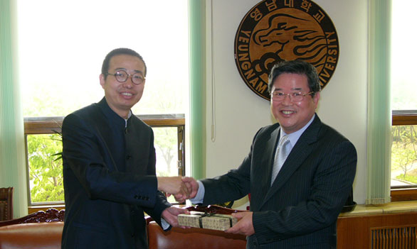 嶺南大學(xué)校長禹東琪先生在校長會議室愉快地會見了