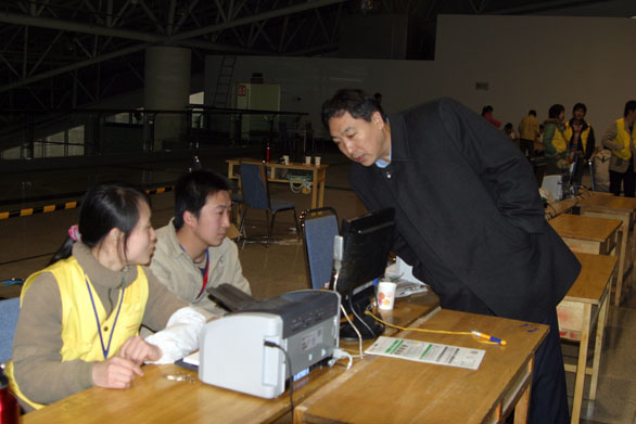 、副院長刁在祥、張云龍來到報名現場檢查各小組設備安裝情況,要求工作人員要增強服務意識,堅持“安全第一,考生第一”的原則,做好充分準備,力爭圓滿完成招生工作。