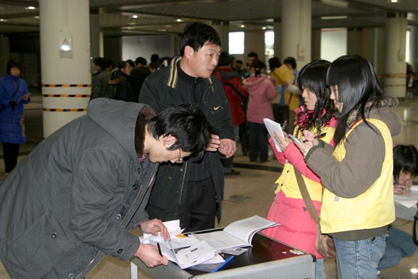 我院宣傳組分為內宣、外宣、廣播、攝影四部分。內宣組主要負責擬定新聞點、跟蹤采訪招考全過程、匯總當天新聞素材、組織并撰寫稿件以及校內的新聞報道等工作。外宣組則負責設計宣傳板和考場周邊宣傳品,制作會展中心正門上方橫幅和紅拱門字幅,還要邀請、接待并引導媒體進行現場采訪,向各媒體介紹招考情況和發送新聞通稿等。廣播組做了一系列前期工作,包括搜集整理歡迎詞、學院概況、考生報考須知、考試須知、監考人員須知以及招辦通知等。與此同時,宣傳組還在會展中心一樓大廳的東南角設立了失物招領處,通過廣播及時為考生找回丟失物品。