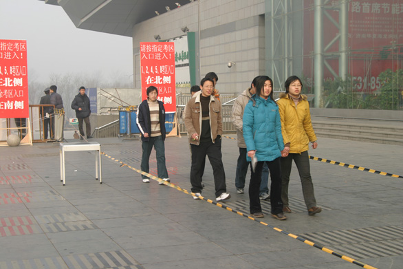 記者還就引導組的工作事宜采訪了負責人杜常春老師。他說:“引導組的工作包括報名期間的引導和考試中的督察兩方面。為了更大程度地方便考生,分別在會展中心的南、北門放置了醒目的考區分布標識牌,考生在結束報名后可提前得知考場編排信息。此外,在考試期間,還將在舜耕路口增設考場分布標識牌,進一步便利廣大考生。”