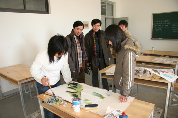 12月17日上午,中央美術學院副院長譚平、中國美協副主席王明旨、中國美術學院副院長宋建明、四川美術學院副院長羅力、魯迅美術學院副院長田奎玉、廣州美術學院副院長趙健、西安美術學院副院長郭線廬等參加2005全國視覺傳達設計教育論壇的專家領導,在我院副院長王秀存、刁在祥的陪同下參觀了我院長清校區。