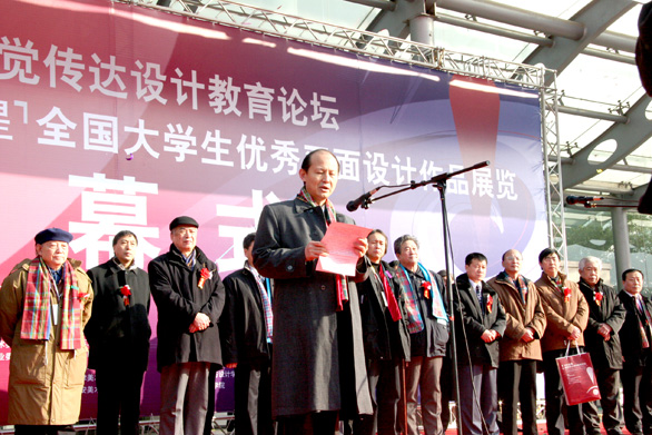 中國美術家協會平面設計藝術委員會副主任何潔宣讀了中國文聯副主席、中國美術家協會主席靳尚誼先生的賀信。靳尚誼在賀信中充分肯定了本次論壇對于中國現代設計發展的重要意義。