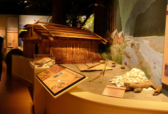 隨后,代表團一行參觀了該校自然文化歷史博物館,該博物館主要從文化人類學角度展現了1萬年前美國印第安土著居民在哥倫比亞和流域的生活用具和場景。該展覽館的突出特點是觀眾的參與性和對公眾藝術、科學與教育的重視。通過親自動手,參與了解藝術創作的過程,從中享受樂趣,了解科學的發展過程,培養邏輯性。該博物館的建筑也非常有特點,三個房檐上分別雕有民族圖騰的木雕,三文魚、熊和烏鴉,分別代表生存、力量和智慧。