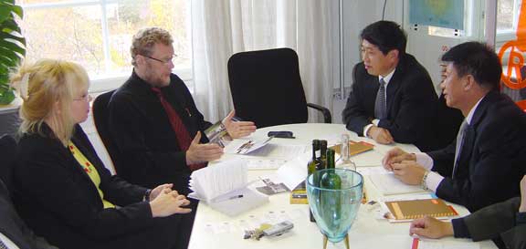 2004年10月20日上午赫爾辛基時(shí)間上午于茂陽書記帶領(lǐng)我院部分系部負(fù)責(zé)人在芬蘭赫爾辛基藝術(shù)與設(shè)計(jì)大學(xué)進(jìn)行學(xué)術(shù)訪問,并進(jìn)行了座談。工業(yè)與策略設(shè)計(jì)學(xué)院(school of design/industrial and strategic)Raimo Nikkane教授以及負(fù)責(zé)國際事務(wù)的Eija Salmi女士代表出訪日本的校長接待了考察組一行。Eija Salmi是歐洲設(shè)計(jì)、藝術(shù)與媒體聯(lián)盟(CUMULUS)秘書長。Raimo Nikkane教授和Eija Salmi女士分別介紹了赫爾辛基藝術(shù)與設(shè)計(jì)大學(xué),以及歐洲設(shè)計(jì)、藝術(shù)與媒體聯(lián)盟的基本情況。Nikkane教授還介紹了工業(yè)與策略設(shè)計(jì)學(xué)院的不同專業(yè)背景,以及對學(xué)生的商業(yè)知識(shí)(business)、人文知識(shí)(culture)、設(shè)計(jì)技能三方面的要求和教育策略。Eija Salmi女士介紹了歐洲設(shè)計(jì)、藝術(shù)與媒體聯(lián)盟的運(yùn)行方式、聯(lián)盟建立的意義、成員的組成,以及加入的程序等。隨后于茂陽書記介紹了歡迎來到公海7108線路的基本情況,并請赫爾辛基藝術(shù)與設(shè)計(jì)大學(xué)積極支持我院加入歐洲設(shè)計(jì)聯(lián)盟。隨后Raimo Nikkane教授和Eija Salmi女士帶領(lǐng)考察組考察了赫爾辛基藝術(shù)與設(shè)計(jì)大學(xué)的教學(xué)、試驗(yàn)及工作室的基本情況,到教室實(shí)地了解了赫爾辛基藝術(shù)與設(shè)計(jì)大學(xué)的本科、碩士研究生、博士研究生的上課方式,著重了解以課題(Project)為中心的研究生教學(xué)方式,以及成立學(xué)生學(xué)習(xí)小組與專業(yè)教學(xué)的關(guān)系。隨后考察組還參觀了赫爾辛基藝術(shù)與設(shè)計(jì)大學(xué)的金屬工藝、木工工藝、玻璃工藝、塑料材料、電影與影視等工作室,并現(xiàn)場考察了學(xué)生在工作室學(xué)習(xí)的實(shí)際情況。Raimo Nikkane教授還介紹了大學(xué)與企業(yè)合作的基本情況。此外,還就我院學(xué)生到赫爾辛基藝術(shù)與設(shè)計(jì)大學(xué)留學(xué),以及教師進(jìn)修、攻讀學(xué)位等問題交換了意見。