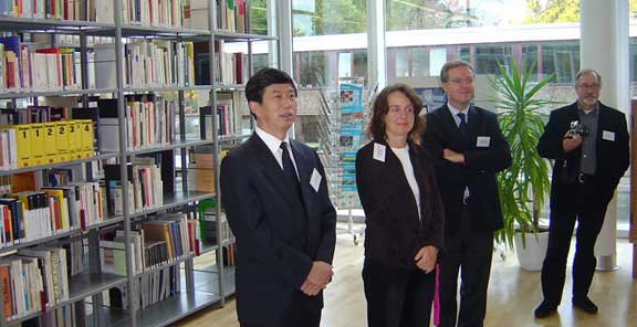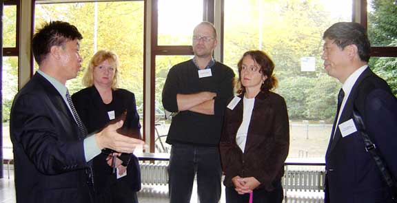 副處長、裝潢藝術系苗登宇副主任、工業設計系王智主任、環境藝術藝術系丁寧副主任、現代手工藝術系吳永福主任和應用設計學院石增全副院長來到德國比勒菲爾德大學設計學院參觀考察。
