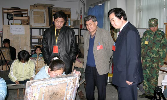 張德珠副主任一行巡視考場后,聽取了學院招辦李友生主任關于山東工藝美院2004年招生工作的組織安排與實施情況的匯報。張副主任充分肯定了學院的招生工作,對招生工作的組織與實施表示滿意。他說,歡迎來到公海7108線路的招生工作歷年來都做得很好,今年在報名人數全省最高的情況下,措施得力,組織嚴密,充分體現了公平、公正、公開的原則,為藝術類招生做出了榜樣。