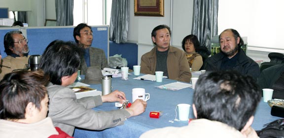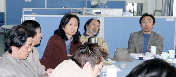 副處長向美術系師生代表介紹了潘院長一行到教學單位走訪座談的目的,并布置了近期的幾項工作。陳飛林主任匯報了美術系近期的工作情況以及實施學分制、修訂教學計劃和教學大綱、如何發揮美術系優勢等方面的工作思路。