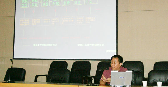 許平教授回顧并總結了中國設計教育的歷程,以設計的“語境”和“語源”為脈絡,論述了設計的“現(xiàn)代性”和“主體間性”,從設計理論談到設計教學方法,涉及到眾多學術前沿問題,引起了在座聽眾的共鳴和思考。教師們普遍反映,許平教授的講座將“設計”置于“文化”的大背景中來談,開闊了大家的視野,拓寬了大家的思路,對于今后的設計藝術研究具有非常重要的啟發(fā)意義。