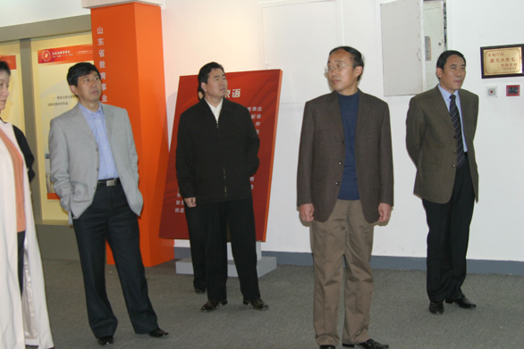 由中共山東省委高校工委、省教育廳主辦,我院承辦的山東教育事業“十五”成就暨“十一五”規劃展將于11月26日在山東省博物館拉開帷幕。25日下午,省委高校工委、省教育廳廳長齊濤在我院黨委書記于茂陽、副院長李新、刁在祥的陪同下視察了展覽準備情況,聽取了組委會撰寫的展覽解說詞,并對解說詞提出了修改意見。齊濤廳長對我院的展覽準備工作表示滿意。