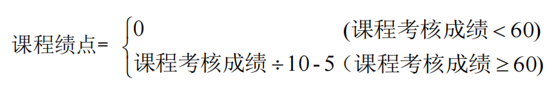實行優秀、良好、中等、及格、不及格五級記分制的課程,其課程績點計算方法為: