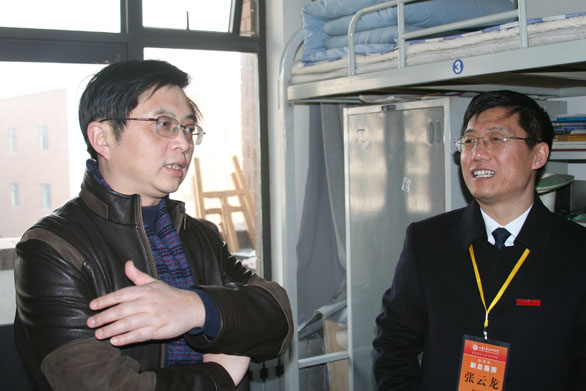 在隨后的參觀中,黃宗賢教授聽取了相關(guān)部門負責人的匯報,并詳細詢問了我校宿舍管理運行體制、住宿費收取標準、兩校區(qū)學生宿舍分布、輔導(dǎo)員來源、勤工助學崗位分布及工資等情況,并對學生公寓管理、文化建設(shè)及衛(wèi)生與秩序等方面所取得的成績給予了充分肯定。