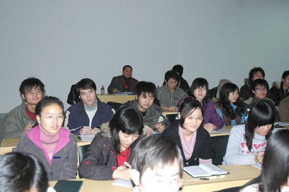 許平教授認真聽課并作記錄,還觀看了學生講解自己的作業。