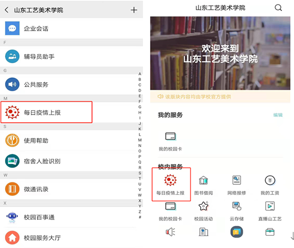 積極開發針對全校師生的“每日疫情上報”功能。自1月31日起,教職工通過PC版網上服務大廳、微信企業號或“今日校園”APP中的“每日疫情上報”;在校學生通過“今日校園”APP中的“每日疫情上報”即可進行自身情況匯報,通過后臺數據的匯總和統計,全校師生健康動態一目了然,方便學校及時掌握和應對處理。這些技術服務手段有效提高了信息采集的準確性和時效性,真正做到對師生負責,對社會負責。